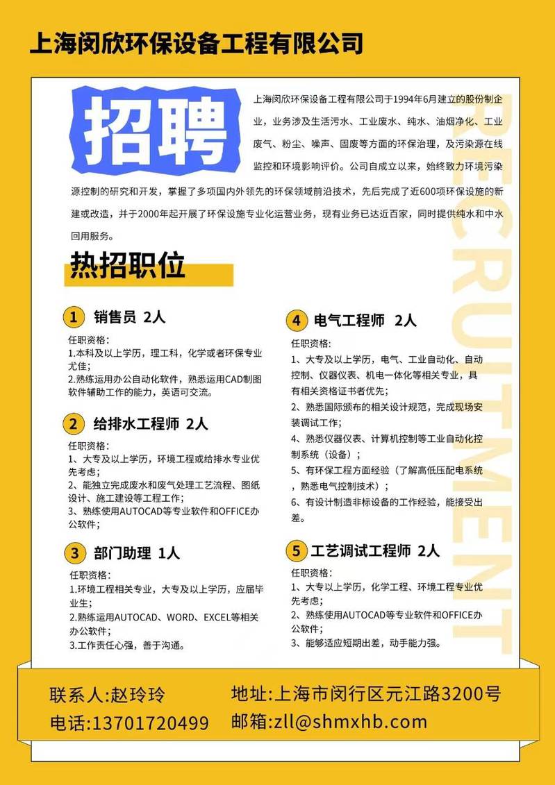 招聘[2024094]上海闽欣环保设备工程有限公司2024春季校园招聘