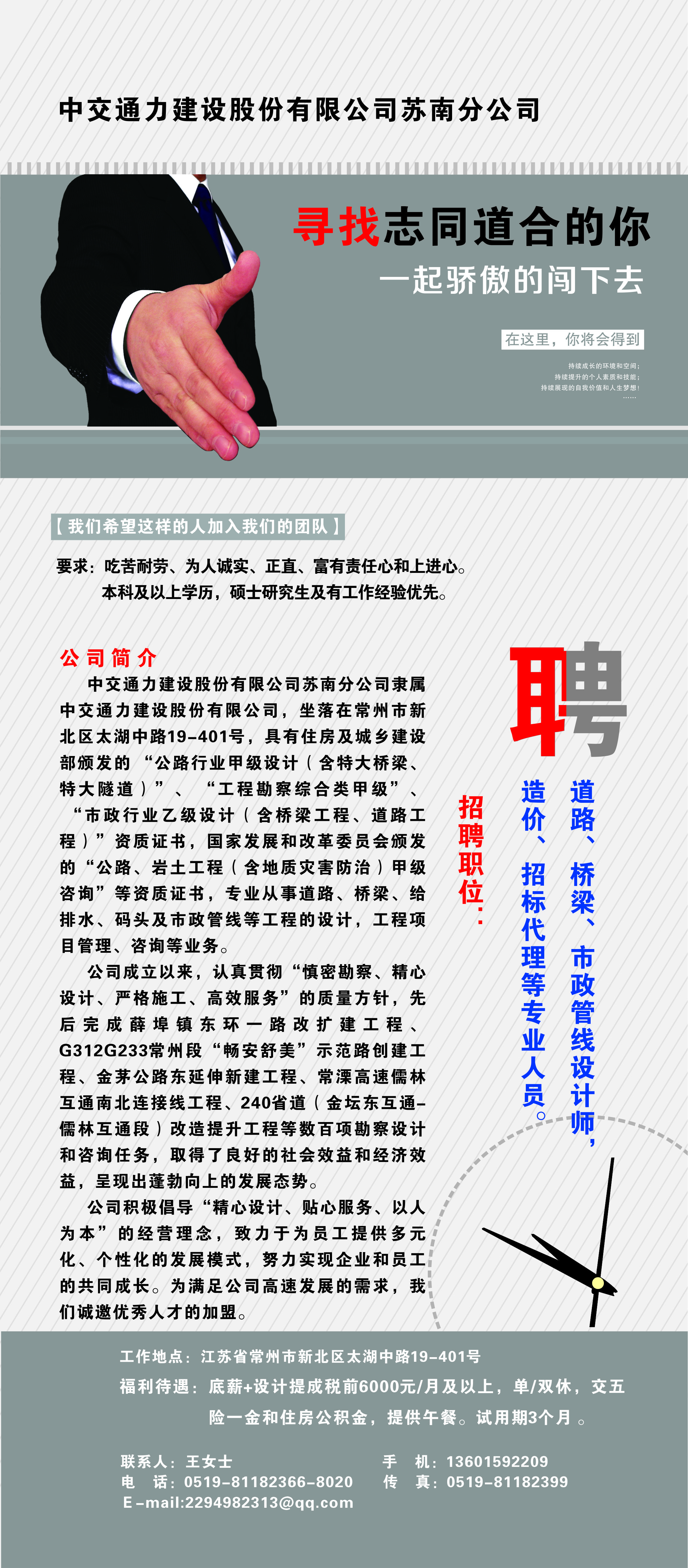 招聘[2024082]中交通力建设股份有限公司苏南分公司2024校园招聘