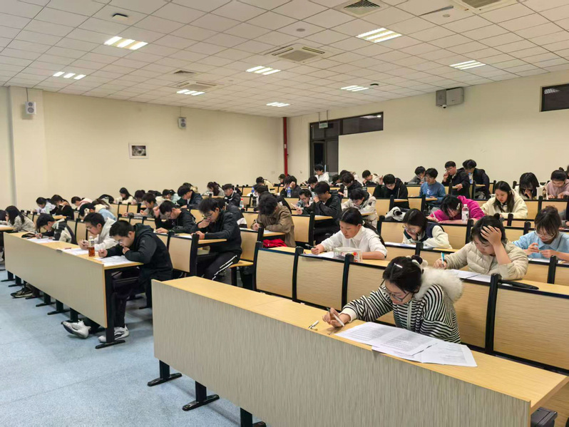 本次英语四级模拟考试严格遵循全国大学英语四级考试流程及规范。开考后,学生迅速进入答题状态,按序完成作文、听力、翻译等全题型作答,全程专注投入、规范答题。监考人员认真履职,全程巡查考场纪律,及时响应学生合理需求,整场考试秩序井然,未出现违规违纪情况。考试结束后,全体考生按指令统一收交答卷,有序离场。至此,考试按计划顺利落幕。