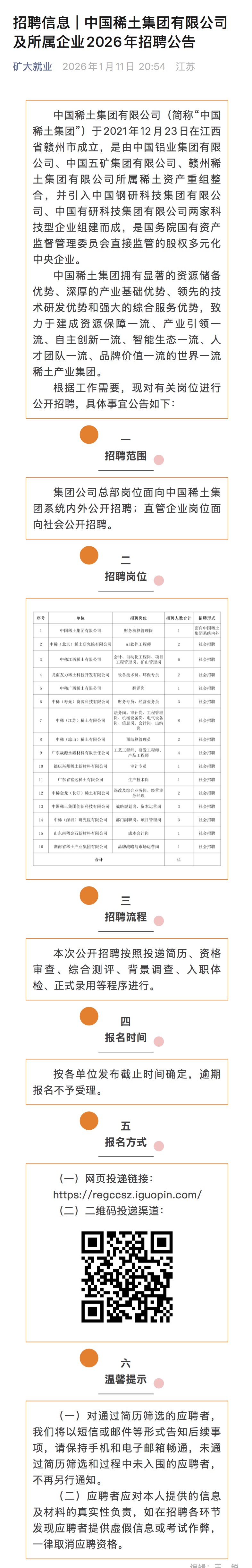 招聘速递[2026002]中国稀土集团有限公司招聘