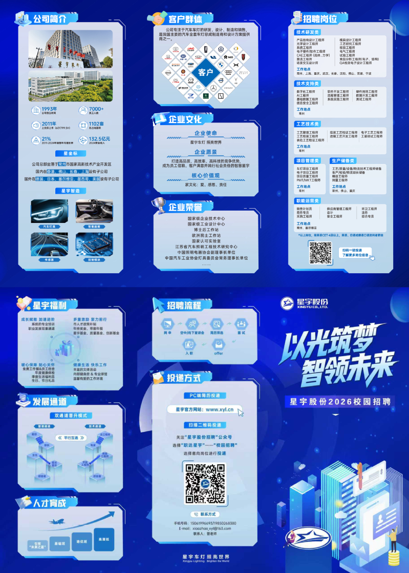 2、线上投递:【智联招聘】&【前程无忧】搜索“常州星宇车灯股份有限公司